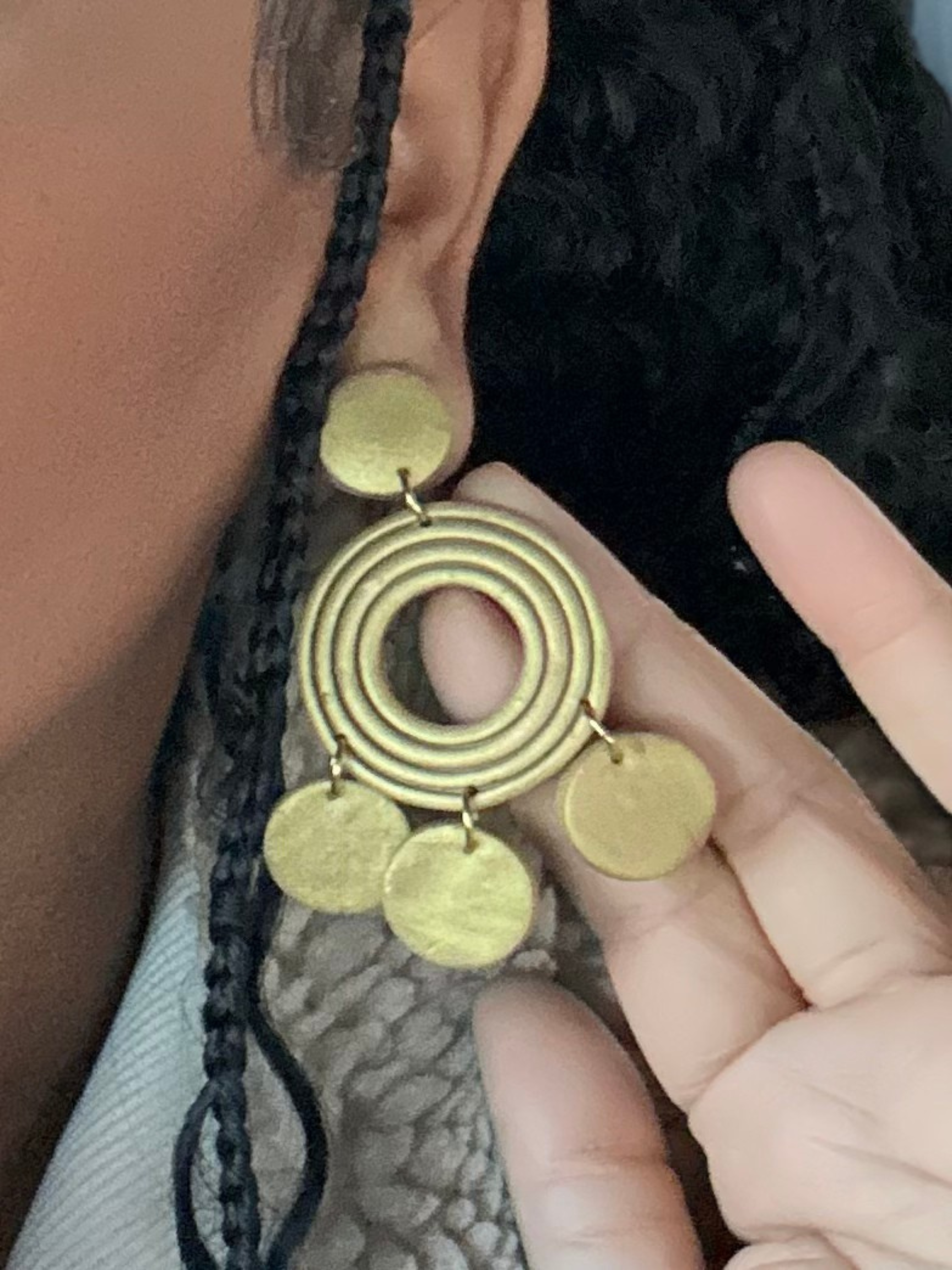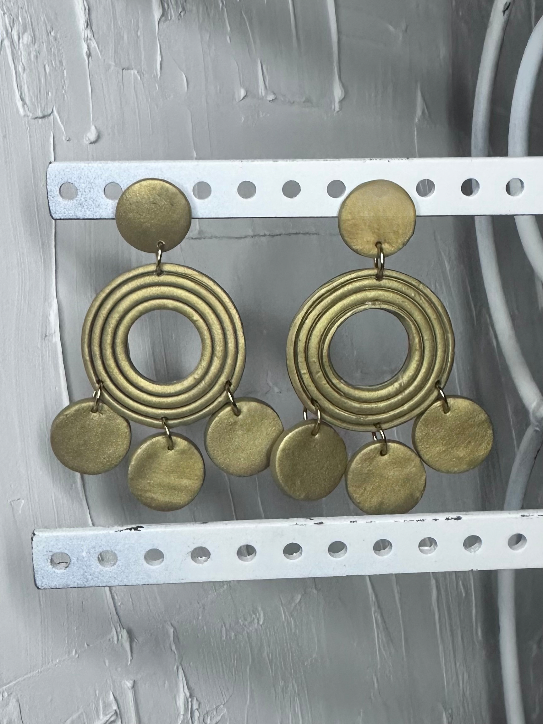 Lightweight gold statement earrings with a tiered, cascading design that adds movement and effortless style to any look.