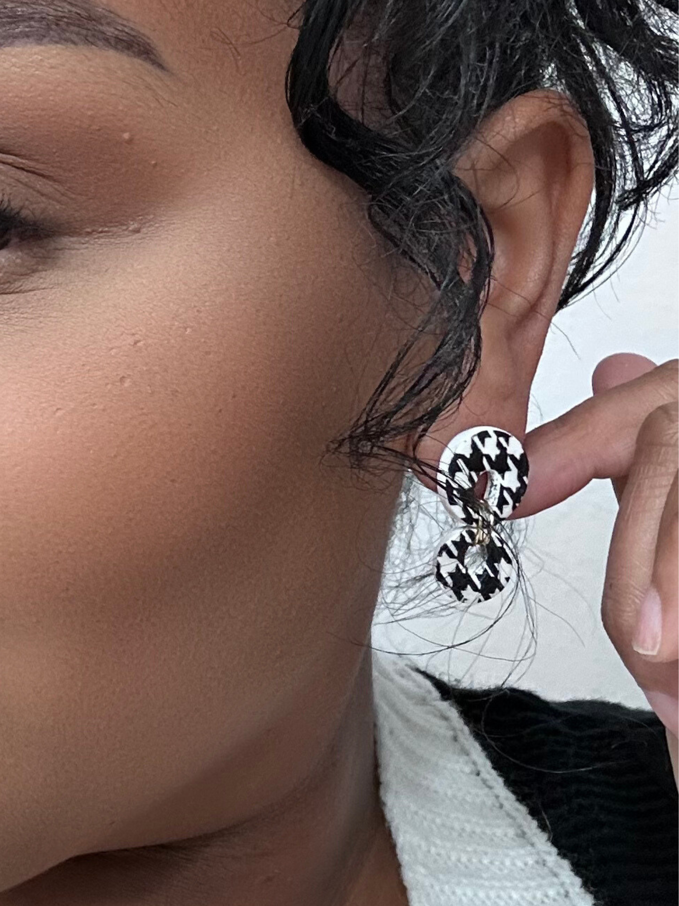 Lightweight double-drop earrings featuring a bold houndstooth pattern and a sleek gold connector—effortless, modern, and the perfect pop for any look.