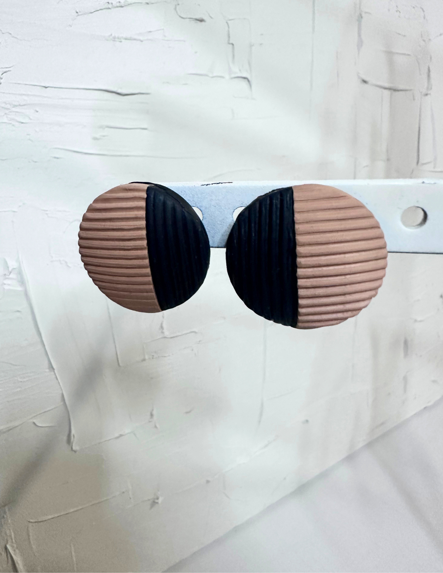 Modern minimalism meets bold contrast. The Split Tone Studs feature a perfect circle divided into two tactile halves. Each side is embossed with fine ridged texture, adding depth and dimension to this effortlessly cool design. These versatile studs transition seamlessly from casual to elevated, making them a go-to statement for everyday edge.